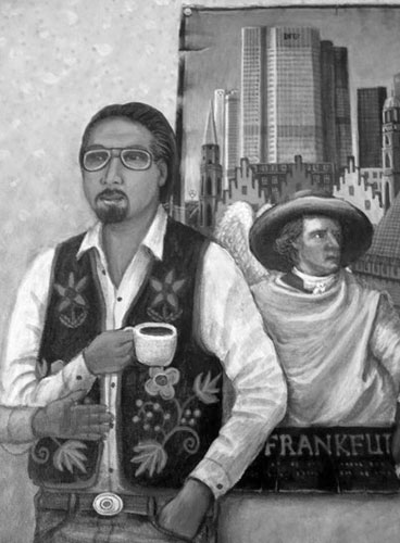 David Bradley self portrait in “Bridges and Boundaries – The American Indian Art Ambassadors “ 1989