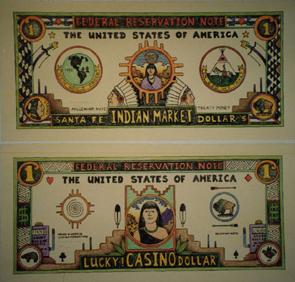 Indian Market Dollar Lucky Casino Dollar 1998 lithograph. ed 29/30 hand colored 28 x 60 cm / 11 x 24 '' Collection Whitney Museum of American Art, New York, 2007 1 | 2 Collection Eiteljorg Museumt, Indianapolis, 2009