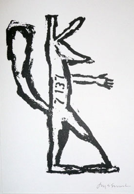 Among the strongest works in the show are those in which Smith appropriates Western art history to get her activist messages across…In the past, Smith has been criticized for being retardataire in her use of various European and American modernisms – an unfair criticism, considering that the appropriation of Modernist styles is a common denominator of recent post-Modern art. In this show eclecticism and irony are the order of the day, the unmistakable tools of the post-Modernist, and also age old hallmarks of traditional Native American art. Smith continues to straddle the categories of “ethnic” and “Mainstream” , rendering them at least momentarily, obsolete.